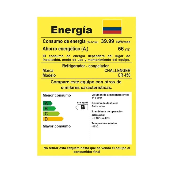 Nevera Challenger No Frost de 360 Litros Brutos con panel digital de clase tropical de bajo ruido y bajo consumo energético, Termostato electrónico con display tipo touch que permite controlar la temperatura del congelador en tres niveles de intensidad desde el exterior, con las siguientes funciones: 1. Enfriamiento rápido. 2. Modo ahorro de energía o vacaciones. 3. Alarma de puerta abierta. 4. Bloqueo funciones. Cuenta con refrigerante R600a que conlleva a una mayor eficiencia energética y reduce el riesgo del impacto sobre el calentamiento global y el daño a la capa de ozono. Tanque en ABS de fácil limpieza, mejor apariencia, mayor durabilidad y mayor resistencia al manchado.